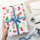 Papel de embrulho de Natal com personagens de Natal. Feliz Natal e Ano Novo, belo papel de embrulho para presentes de Natal adoráveis. Papel de embrulho de NATAL decorado com símbolos mágicos de Natal, flocos de neve de inverno, elementos de presentes de feriado, boneco de neve, árvore de Natal, bola de Natal, flocos de neve e mais personagens festivos. Design gráfico original e moderno.