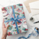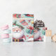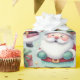 Um sorriso encantador de papel de embrulho de Natal mostra ótimos Santas adorados em roupas coloridas, cercados por presentes lindamente embrulhados e decorações lúdicas.