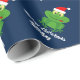 Folha de Natal de sapo verde engraçada para crianças. Brincadeira de presente de Papai Noel personalizada com o nome da criança. design de plástico de presente de animal de desenho para meninos e meninas. Faça um para filho, neto, filha, novo bebê, neto etc. Ilustração de feriado para crianças. Famoso animal da floresta Santa Clause. Fundo de cor personalizado é azul de marinho.