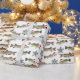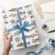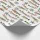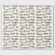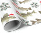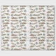 Papel de embrulho de Natal, peixe, pescador. Projetado para presentes que são presentes embrulhados para o desportista ao ar livre em sua vida. Um pescador sonha com a próxima grande captura. Um design criado para aqueles que adoram pescar. Ilustração com peixes vestindo Santa Hats e flocos de neve de camuflagem.