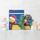 Festivo Goldendoodle Andando De Lado Trazendo Para Casa A Árvore De Natal - Bela ouro, amante de Natal, embrulhando papel de fundo azul!