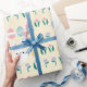 Papel de embrulho encantador com um delicioso padrão de coelhinhos, ovos de Páscoa coloridos e ramalhetes botânicos Perfeito para adicionar um toque festivo aos seus presentes de Páscoa O design repetido cria uma apresentação caprichosa e alegre, ideal para crianças e adultos