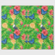 Padrão de aquarela com tucano, borboleta, hibisco e folhas tropicais. Eu pintei elementos para o padrão com aquarelas no papel, e então os digitalizei e fiz o padrão no Illustrator