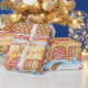Um rapaz de pão de gengibre e uma rapariga decoram este papel de embrulho de Natal bonito. O design é da arte original.