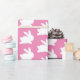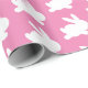 Papel de embrulho lindo e elegante para os seus presentes. O design é um padrão de coelho branco sobre um fundo rosa. Ótimo para chás de bebê ou Páscoa.