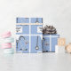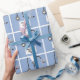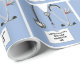 Papel de embrulho de presente de formatura de escola de medicina e decoração de festa de médico com aventais de hospital azuis, estetoscópio e canivete suíço engraçado. Edite o texto para adicionar o nome do médico.