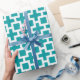 Papel de embrulho de presente de padrão óptico geométrico em Teal. Papel de plástico para prensas de papel de alta qualidade impresso, brilhante, de linho ou Tyvek. Pares geométricos e padrões cruzados. Feito e impresso nos EUA. Ideal para aniversário, aniversário e presentes de casamento ou presentes de Natal.