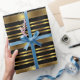 Linda folha de natal preto e dourado, papel de embrulho de presente personalizado para festa de aniversário e festa de aniversário de 50 anos de casamento. Você pode personalizar com a sua escolha de texto na cor e estilo de fonte de sua escolha! Você pode excluir o texto de exemplo e deixar o desenho dourado elegante.