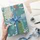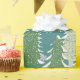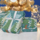 O papel bonito de férias ou de inverno apresenta árvores verdes, algumas cobertas de neve, flocos de neve, nuvens, rapinhas vermelhas e céu azul!