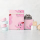 Papel de enrolamento com design, com ilustração de um elefante cor-de-rosa com um rato branco ilustrado por Radka Kavalcova/MaxiHarmony