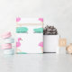 Flamingo do divertimento do rosa quente que está em uma poça da água. Personalize com nome e idade da criança do aniversário.
