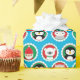 Caracterizando um fundo azul e caráteres do feriado goste do papai noel, dos pinguins, dos ursos & das corujas. Gráficos por Lilly Bimble em MyGrafico.com