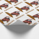 Papel de envolvimento tropical do feriado com Feliz Natal no impressão do Hawaiian e do dançarino da menina de hula da saia de grama. Papel de embrulho do Natal de Havaí do divertimento! O ouro e o branco são as cores principais.