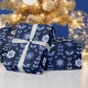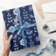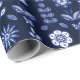 Um lindo padrão de estilo escandinavo azul e branco com flores e borboletas.