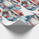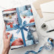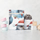 Uma design de papel embrulhado no Natal, um capricho, apresenta corujas charmosas vestindo chapéus de Papai Noel em meio a presentes de neve e arcos vermelhos vibrantes, evocando um espírito de feriado alegre. Perfeito para comemorações festivas!