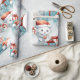 O papel de embrulho apresenta adoráveis gatos brancos vestindo chapéus de Papai Noel festivos, cercados por presentes coloridos enfeitados com arcos, capturando o espírito alegre da temporada de festas.