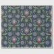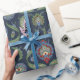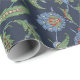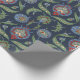 Padrão floral do ornamentado árabe em tons de verde-oliva, azul-claro e vermelho-quente. Folhas, caules, flores e nãos-esquecidos. Sobre fundo azul de argila ebony.