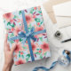 Este bonito papel de embrulho é bom. O design apresenta um padrão floral suave em cores de pêssego e vermelho. Perfeito para um presente de chá de fraldas, chá de panela ou outra ocasião especial.