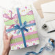 Este papel de embrulho com padrão caprichoso apresenta um lindo design de flores e libélulas rosa. Use este papel para um chá de bebê e outros presentes de ocasiões especiais.
