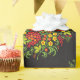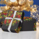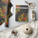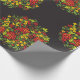 Hohloma russo papel de embalagem, arte russa, morangos vermelhos, folhas amarelas, fundo preto