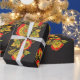Hohloma russo papel de embalagem, arte russa, morangos vermelhos, folhas amarelas, fundo preto