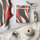 Listras onduladas em vermelho, creme e preto carvão com textura vintage desgastada. Este padrão abstrato dinâmico apresenta linhas orgânicas e fluidas com caráter pintado à mão e sensibilidade de cor moderna de meados do século. A paleta de alto contraste e o movimento rítmico criam energia visual perfeita para apresentação de presentes ousados, temas retrô e designs contemporâneos.