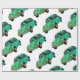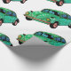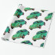 Desenho original de arte de um carro hippie verde com elementos mandala nele, plástico especial, papel de embrulho para ocasiões especiais.