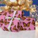 Papel de Embrulho Rosa Matte com Desenho de Borboleta Monarca