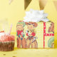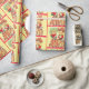 Papel de papel de embrulho dos miúdos do vaqueiro e da vaqueira.   O fundo é verificação amarela com uma beira vermelha e branca da estrela.