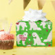 Cães prienes Excelentes bonitos, vestidos com roupas festivas de férias, chapéus de Papai Noel e blusas de gárgula com padrão de Enfeites de natal espalhados.
