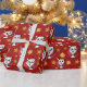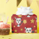Papel de embrulho de Natal com ilustração de um pequeno panda bonito com chapéu de Papai noel, design de Natal para crianças, sobre fundo com padrão amarelo sem costura com estrelas, ilustrado por Radka Kavalcova