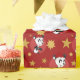 Papel de embrulho de Natal com ilustração de um pequeno panda bonito com chapéu de Papai noel, design de Natal para crianças, sobre fundo com padrão amarelo sem costura com estrelas, ilustrado por Radka Kavalcova