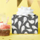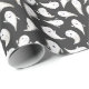 Um encontro de fantasmas não tão assustadores atravessou este rolo preto de presente dando a seu presente um pop de prazer fantástico para o mês de outubro e a temporada de Halloween.