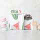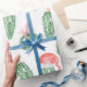 Este papel de embalagem tem diferentes cactos e chapéus de Papai Noel.