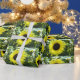 Enorme girassol brilha no jardim tortuoso de girassol, mostrado em papel de embrulho para os olhos. Papel de embrulho ideal para todas as ocasiões!