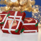 Celebrar a época festiva com este charmoso papel de embrulho de Natal, com caixas de presentes rústicas, enquadrados em quadrados brancos e enfeitados com folhas sagradas e frutas vermelhas. Colocado sobre um fundo vermelho profundo com linhas geométricas de ouro, este padrão repetitivo adiciona um toque quente, aconchegante e vintage ao seu embrulho de presente de feriado. Perfeito para presentes de Natal, favoritos para festas e decoração festiva!