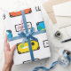 Um design de viagem com tema com malas e cores brilhantes