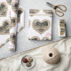 Lindo par de cisnes rodeados em decoração de coração marrom adorna este papel de embrulho de presente "O Amor É..."
