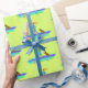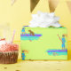 Papel de embrulho com presente de paddleboarding com desenho de menina em uma prancha com seu cachorro. O padrão é impresso sobre a cor charuto tropical. Embrulhe presentes para a filha adolescente ou amiga. Este papel divertido e esportivo vem em uma variedade de comprimentos.