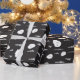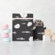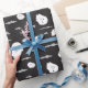 "Fantasmas e Nuvens Negra Papel de Enrolar Negra" mostra fantasmas amigáveis que flutuam entre nuvens sábia, criando um design branco e estranho para o embrulho de presente de Halloween.