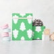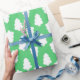 um papel de embrulho de inverno verde com uma árvore de Natal branca para embrulhar presentes.