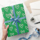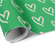 Papel de embrulho verde coração rosa para aniversários, chá de bebê, casamentos ou presentes de Natal. Não vá à festa com o mesmo papel de embrulho, seja diferente.