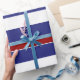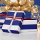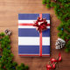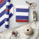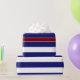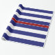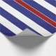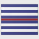 As listras azuis e brancas corajosas com um acento vermelho listram no centro.