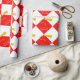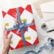 Papel de embrulho criativo para presente de formatura com design de congratulações de gorro artístico e borla dourada. Edite o texto para adicionar o nome do formando.
