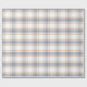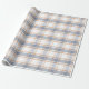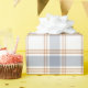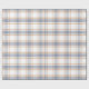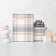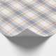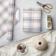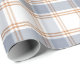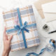 Papel de embrulho leve e neutro em termos de gênero com um padrão de xadrez regência atemporal numa paleta de cores suave em azul, branco e laranja.