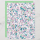 Folha de papel clássico, divertido e contemporâneo, com azul claro, rosa, verde pastel e padrão de arte terrazzo violeta violeta lavanda num fundo branco.