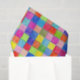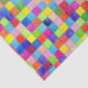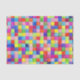 Quadrados de papel gráfico colorido manualmente com lápis coloridos em cores aleatórias. Não há dois quadrados adjacentes com a mesma cor. Os contornos dos quadrados de papel de gráfico são feitos de linhas azuis-claras.