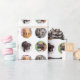 Enrole seus presentes com as caras doces de seus amigos peludos neste papel de embrulho de presente com quatro de suas fotos favoritas em círculos redondos acentuados com uma dispersão de flocos de neve modernos e minúsculas impressões de pata dando a este papel de embrulho uma vibração festiva. Que não adoraria receber um presente embrulhado com os rostos doces dos seus companheiros animais.