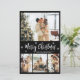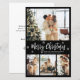 Legenda Moderna, Elegante, Preto e Branco 4 Colagem de Fotos Feliz Cartão Final de Natal de Script. Esta modelo de quatro (4) fotos festiva, minimalista e caprichosa apresenta uma bonito colagem fotográfica, um floco de neve e diz Feliz Natal! O texto de saudação de "Feliz Natal" é escrito em um belo tipo de letra tipografia com letra branca e letra escrita em fundo preto. No lado inverso, saudando modelo de texto a preto. Cartão de saudação bonito e barato para sua família e amigos nesta época de Natal e Férias.