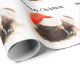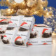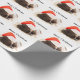 Este papel de embrulho lindo do Natal caracteriza um filhote de cachorro do buldogue com um chapéu do papai noel sobre - olha tão bonito que qualquer um amará receber um presente com ele que decora o.